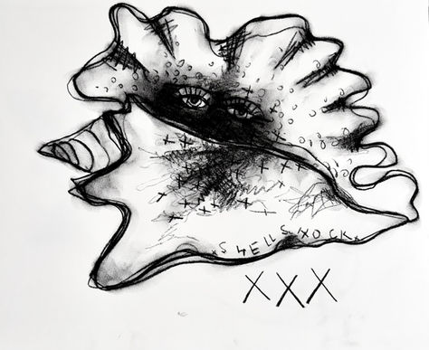 Fresh and improvisational, drawings are usually made with charcoal and pastels; Oil paint, acrylic paint, and gold leaf occasionally complement the process